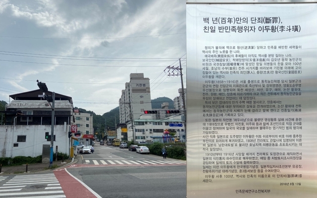 이두황이 죽은 지 104년이 지난 2020년, 전북 전주시 완산구 중노송동 기린봉 자락에 있는 이두황의 묘를 찾아갔습니다. 기린봉 아파트에 들어가기 전에 그의 단죄비를 보실 수 있습니다. 단죄비에는 이두황의 이력과 친일행적이 자세히 적혀있습니다.