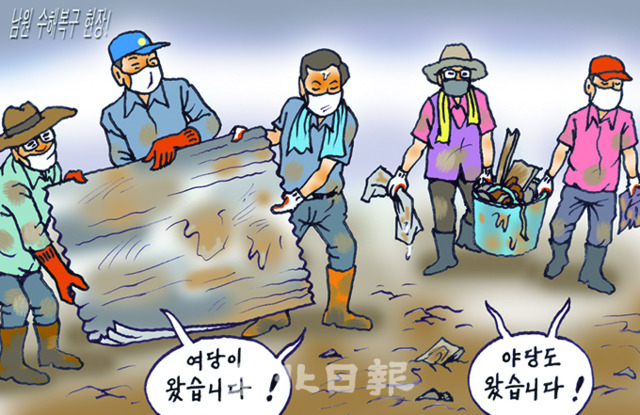 [전북일보 만평] 수해복구 현장 여야 낯내기