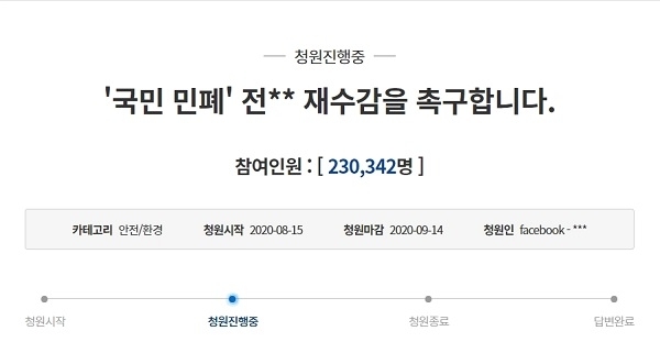 청원인은 “전 씨가 담임으로 있는 교회에서 코로나 확진자가 대거 발생하는 모습이지만 결코 반성하는 기색이나 교인들의 건강을 걱정하는 기색도 없어 보인다. 종교의 탈을 쓰고 우리 사회 안전을 해치는 전씨를 반드시 재수감 시켜야 한다”고 주장했다.