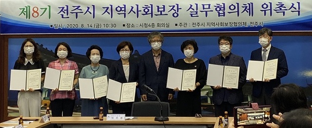 전주시 지역사회보장협의체(공동위원장 김승수·박주종)는 14일 시청 4층 회의실에서 실무협의체 위원 및 관계자 30여 명이 참석한 가운데 ‘제8기 지역사회보장 실무협의체 위원 위촉식’을 갖고 첫 회의를 실시했다.