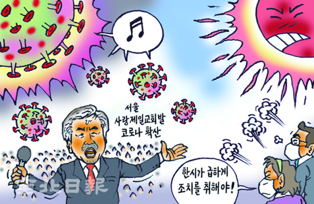 [전북일보 만평] 코로나19 확진자 급증과 우려