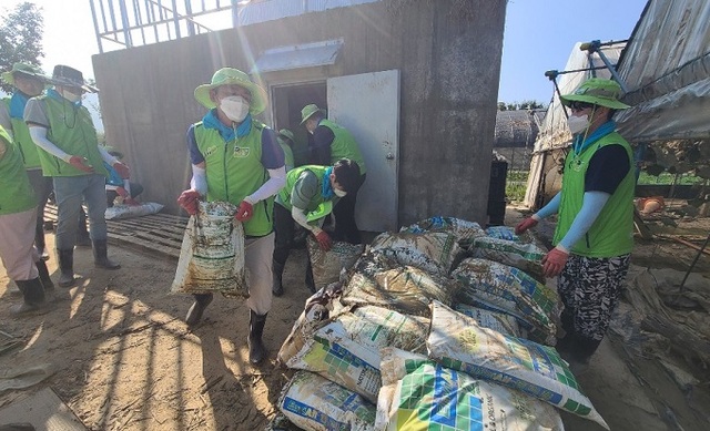 이날 전북지역본부 및 본사 나눔봉사단 임직원 60여명은 제방 붕괴로 침수 피해가 심각한 남원시 대강면 일대 비닐하우스 및 농작물 처리 등 수해복구를 지원하며 구슬땀을 흘렸다.