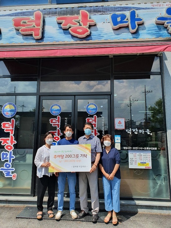 한씨네 덕장마을 한상권 대표는 “제대로 영양가 있는 식사도 하지 못하고 계시는 분들이 모처럼의 고 영양식인 추어탕을 드시고 조금이나마 건강했으면 하는 마음에서 기탁을 하게 되었다”며 “앞으로 기회가 된다면 더 많은 이웃이 행복한 마음으로 건강한 음식을 드실 수 있는 기회를 만들도록 노력하겠다”고 말했다.