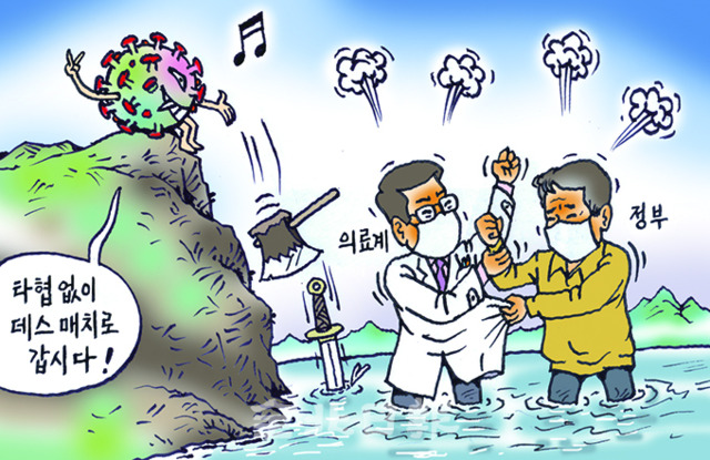 [전북일보 만평] 타협 없으면 코로나가 승자