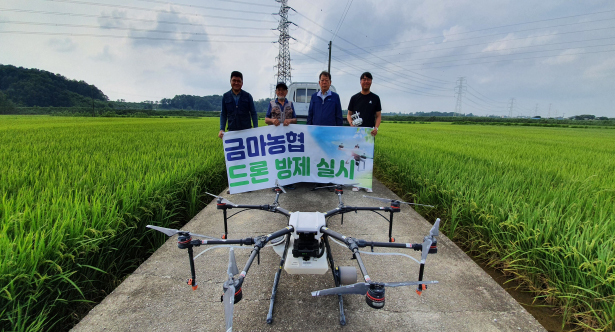 익산 금마농협(조합장 백낙진)이 조합원 농업인을 대상으로 ‘드론’을 활용한 벼 병해충 무인방제에 나서 큰 호응을 얻었다.
