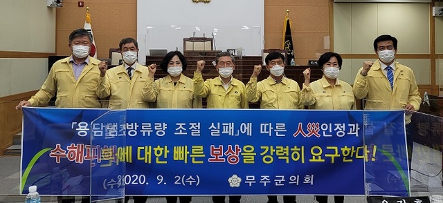 무주군의회(의장 박찬주)가 제279회 임시회 1차 본회의에서 ‘용담댐 방류량 조절 실패에 따른 수해 책임 및 피해보상 촉구 건의문’을 의원 만장일치로 채택했다.