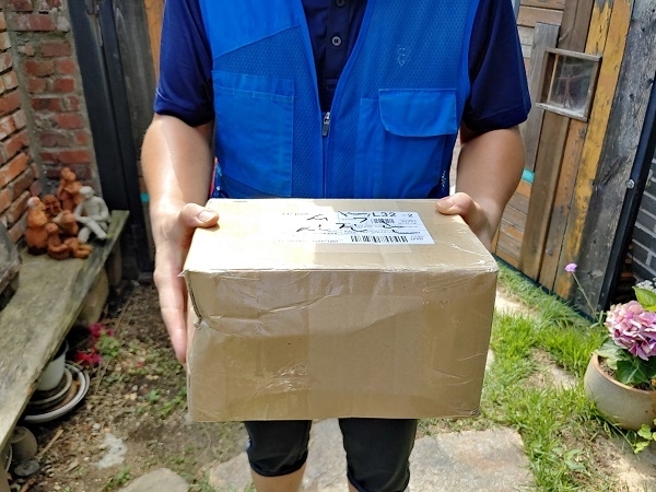 택배상자에 적힌 “던지지 마시오”라는 문구가 물건을 주고 받으며 더불어 사는 삶의 가치를 일깨운다. 기다림이 주는 설렘과 함께 소중한 마음을 온전하게 전달하려는 이들의 땀방울이 한 공간에 어우러진다.