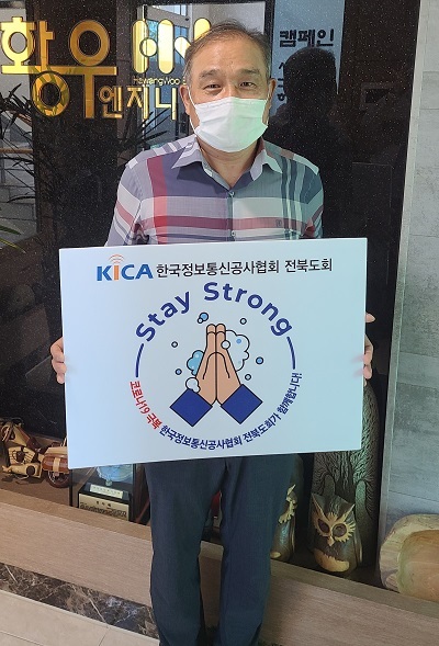 한국전기공사협회 전북도회 양관식 회장이 지난 2일 코로나19 극복을 위한 ‘스테이 스트롱 (Stay Strong)’ 캠페인에 동참했다.