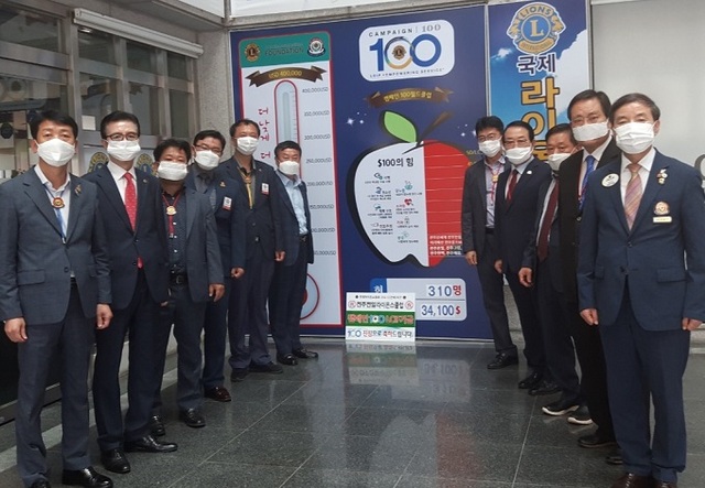 전일라이온스 홍영식 회장은 “코로나19로 전 세계가 어려운 시기에 ‘더 낮게 더 가깝게 더 멀리’라는 주제실현을 위해 헌신봉사 하는 지구 박병익 총재의 의미 있는 봉사에 동참하고자 회원들이 자발적 기탁했다”고 말했다.