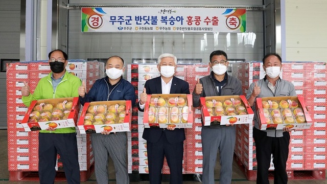수출 길에 오른 복숭아는 장호원 황도 및 엘바트 등의 품종으로 일교차가 큰 무주지역 특성 상 진한 향을 머금고 있으며 당도가 아주 높다. 선적된 물량은 NH 농협무역(대표 김재기) 농산수출부 과일팀을 통해 홍콩 측에 전달되며 3kg들이 1박스 당 1만 4000원에 계약된 것으로 알려졌다.
