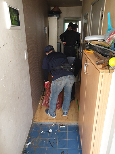 이날 자원봉사자 등 20여 명은 집안에 쌓여 있던 5톤 가량의 폐가전과 생활쓰레기를 모두 치우고 집안을 소독했다.