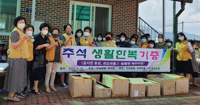 또 격려의 의미로 이재민 300명에게 안씨공방, (주)금강조경, 두부마을의 후원을 받아 생활한복 300벌(약 1000만원 상당)을 전달했다.