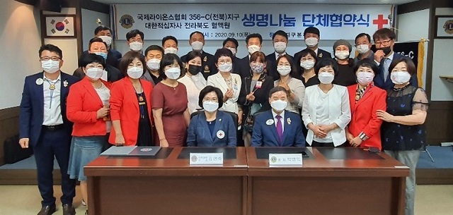 대한적십자사 전라북도혈액원(원장 김연숙)과 국제라이온스협회 356-C지구(총재 박병익, 이하 전북라이온스)가 10일 생명나눔단체 협약식을 가졌다.