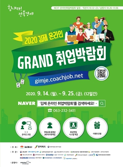 기업의 맞춤형 인재 채용과 꿈을 찾아 도전하는 인재들의 만남의 장인‘2020 김제시 그랜드 온라인 취업박람회’가 14일부터 25일까지 개최된다.