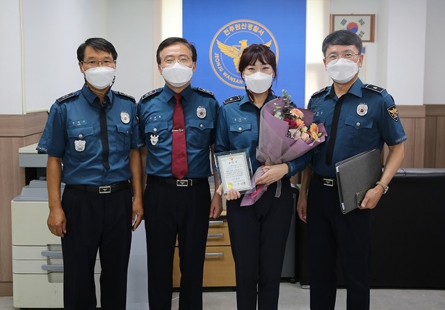 진교훈 전북지방경찰청장은 16일 전주완산경찰서 서학파출소를 찾아 특수절도범을 검거한 유공으로 유다연 경위에게 즉상을 수여했다.