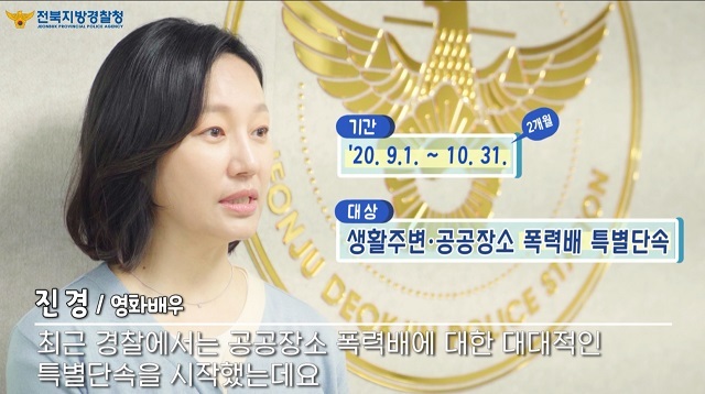 이번 특별단속 홍보에는 영화 베테랑, 암살, 감시자 등에 다수의 작품에 출연해 큰 사랑을 받는 배우 진경이 동참해 눈길을 끌고 있다.