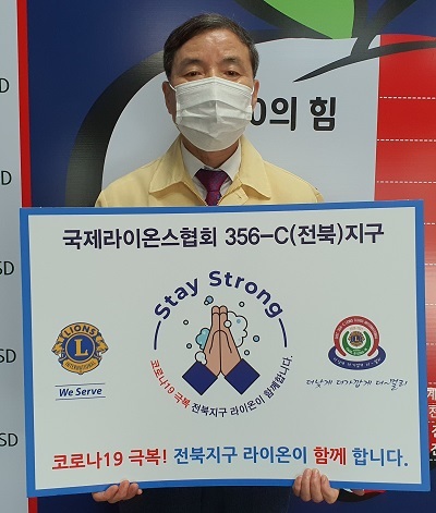 국제라이온스협회 356-C(전북)지구 박병익 총재는 코로나19 극복을 위한 ‘스테이 스트롱’ 캠페인에 동참했다.