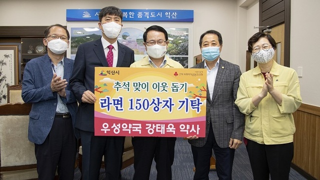 익산 우성약국(대표 강태욱)은 17일 정헌율 익산시장을 방문해 어려운 이웃들에게 전달해 달라며 라면 150상자를 기탁했다.