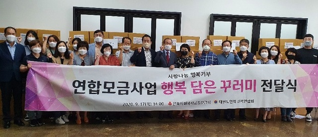 대한노인회 전북연합회(회장 김두봉)와 경로당광역지원센터(센터장 경정희)는 17일 전북사회복지공동모금회와 함께하는 경로당 어르신 사랑나눔 행복기부 ‘행복 담은 꾸러미’ 전달식을 가졌다.