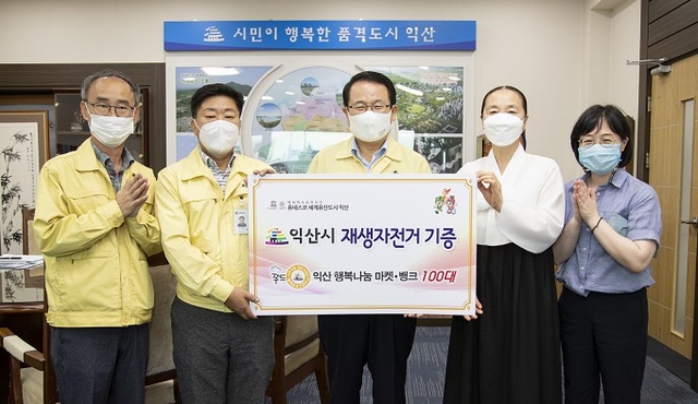 익산시는 18일 자전거 100대를 익산행복나눔마켓·뱅크에 기증했다.