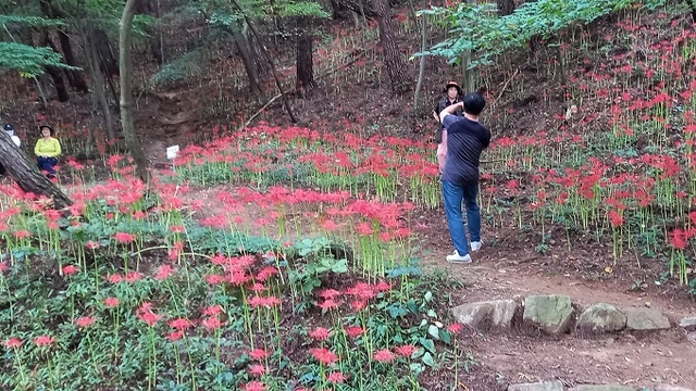 완주군 모악산 도립공원 등산로에 꽃무릇이 만개했다.
