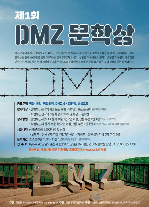 창간 75주년을 맞은 강원일보는 화천군, K-water 화천권지사와 공동으로 'DMZ 문학상'을 올해 제정, 전국의 문학도를 대상으로 공모에 들어갔다.