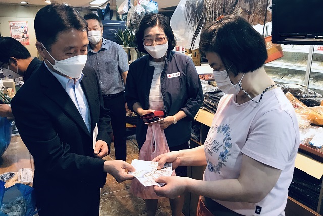 이번 행사는 코로나19 장기화에 따른 경기 침체와 소비위축으로 힘들어하는 시장 상인들에게 조금이나마 힘을 보태고 지역 민생경제의 안정과 활력 회복을 위해 실시됐다.