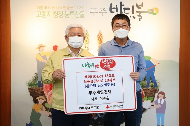 지난 23일에는 무주제일건재(대표 이승훈)에서 500만원 상당의 백미 180포대와 식용유 20개를 보내왔으며 전주 예수병원(원장 김철승)에서도 900만 원 상당의 덴탈마스크 3만 장을 전달했다.