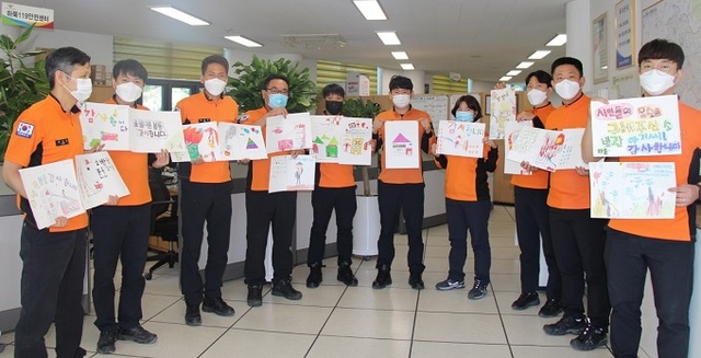정읍소방서(서장 백성기) 직원들에게 고부초등학교 119소년단 학생들이 응원과 감사의 마음을 담은 그림편지를 보내와 훈훈함을 주고 있다.