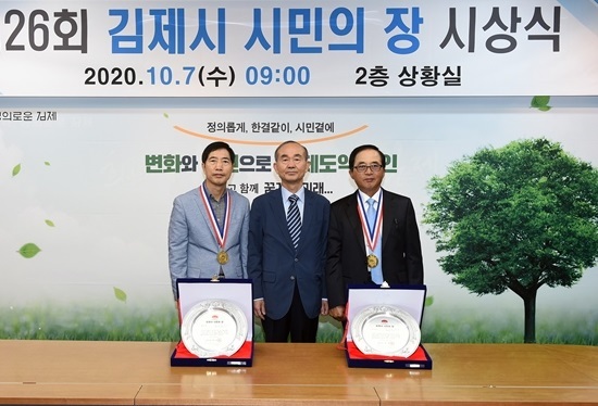 박준배 김제시장은 "김제시 최고의 영예인 시민의 장 수상을 축하하면서 앞으로도 경제도약을 통해 정의로운 김제시가 실현될 수 있도록 각 분야에서 힘써 달라"고 당부했다.