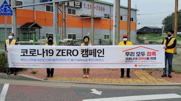 대한적십자사봉사회 전라북도협의회(회장 최정숙)는 지난 14일 전주시 덕진구 화개사거리에서 코로나19 예방수칙과 사회적 거리두기 안내를 위한 ‘코로나19 ZERO 캠페인’을 전개했다.