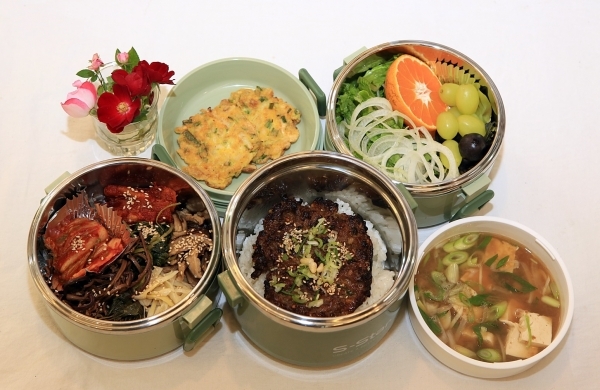 도시락은 스테인리스 보온 도시락을 사용함으로써 쌀쌀해진 날씨에 따뜻한 식사는 물론, 재활용이 가능해 1회용품 사용도 줄일 수 있도록 했다.