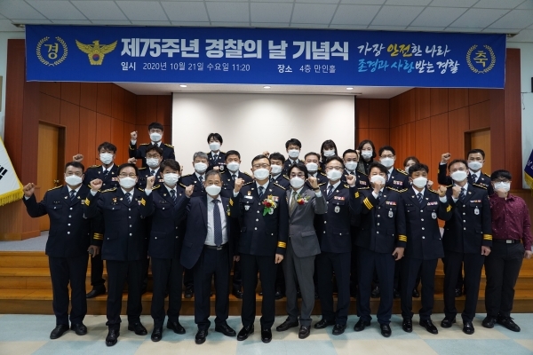 남원경찰서(서장 강태호)는 21일 남원경찰서 4층 만인홀에서 강태호 남원경찰서 서장, 김종관 경우회장, 배석기 경찰발전협의회장 등 25명이 참석한 가운데 ‘제75주년 경찰의 날 기념식’을 개최했다.