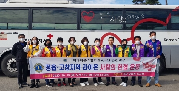 국제라이온스협회 356-C(전북)지구 소속 정읍·고창지역협의회(부총재 강수형) 라이온들이 최근 사랑의 헌혈운동을 펼치며 라이온스 봉사 이념을 실천했다.