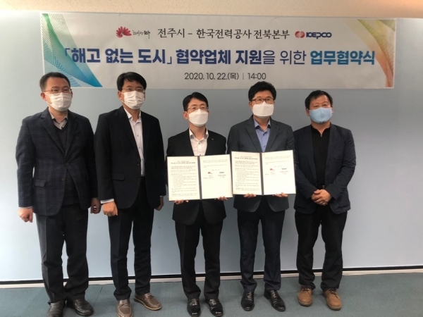 전주시와 한국전력공사 전북본부(본부장 이경섭)가 코로나19 경제 위기 극복을 위한 ‘해고 없는 도시’ 상생선언에 동참한 협약업체에 전기요금 절감 등 혜택을 주기로 했다.