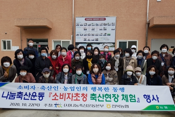 전북농협과 나눔축산운동본부는 22일 소비자를 초청해 축산현장을 견학하고 체험하는 행사를 가졌다.