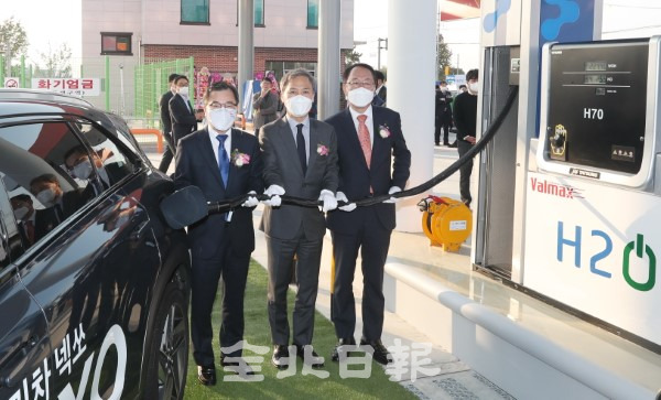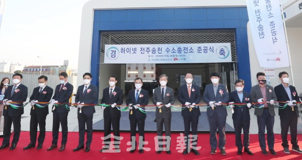 전주시와 수소에너지네트워크(주)(하이넷(주))는 26일 김승수 전주시장과 홍정기 환경부 차관, 우범기 전라북도 정무부지사, 유종수 하이넷 사장, 강동화 전주시의회 의장, 정복철 전북지방환경청장, 문정훈 현대자동차 부사장 등이 참석한 가운데 ‘전주송천 수소충전소’ 준공식을 개최했다.