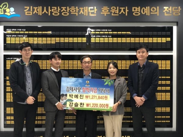 이성문 상임이사는 “지역 사회에서 받은 도움을 잊지 않고 장학금으로 기탁해 준 두 사람의 정성어린 뜻은 지역사회의 귀감이 될 것이다”며 “앞으로도 우수한 젊은이들이 김제의 미래를 이끌어갈 인재로 성장할 수 있도록 아낌없이 지원하겠다”고 화답했다.