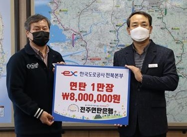 한국도로공사 전북본부(본부장 권혁)는 5일 전북지역 에너지 취약계층을 위해 연탄 1만장을 전주 연탄 은행에 전달했다.