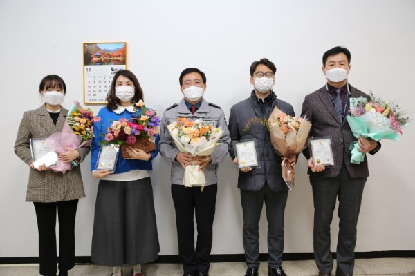 전북지방경찰청장(치안감 진교훈)은 지난 6일 전주완산경찰서 수사과를 찾아 감염병의 예방 및 관리에 관한 법률 위반 피의자를 검거하는 데 공을 세운 모슬미 경위, 정덕성 경위, 박현례 경사, 김혜성 순경에게 즉상을 수여했다.
