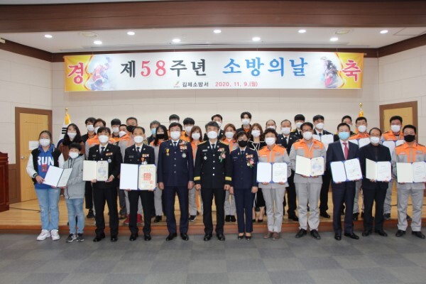이 날 행사에는 훈장 1명(김제남성의용소방대장 오형진), 근정포장 1명(소방행정과장 박지모), 장관표창 2명(구조대장 조창현, 금산남성의용소방대장 김태열), 청장표창 5명(교동센터 반형환, 만경센터 전일진, 성덕남성의용소방대장 오승경, 금산사 김종열 종무실장, 홈플러스 시설팀장 박형선), 도지사표창 5명(교동센터 한봉석, 백산남성의소대장 이재형, 부량남성의용소방대장 박창원, 참고을 대표이사 김윤권, 김제시지역사회보장협의체 팀장 박민이), 김제소방서장표창 17명(소방공무원 6명, 의무소방원 3명, 사회복무요원 2명, 의용소방대원 2명, 신성소방 대표 추교원, 광활초등학교 학생 오소아, 이승현, 샬레1차아파트 관리소장 문경식)이 수상자로 선정되어 시상식을 가졌다.