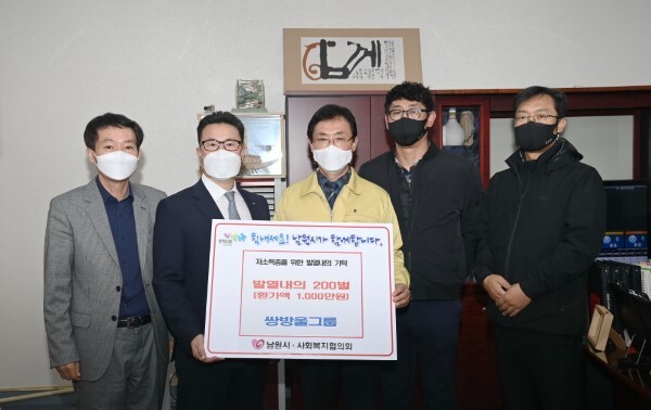 쌍방울그룹은 지난 10일 남원 저소득층에게 전해달라며 발열내의와 기모내의 등 총 200벌(1000만원 상당)을 남원시사회복지협의회(회장 노재규)에 기탁했다.