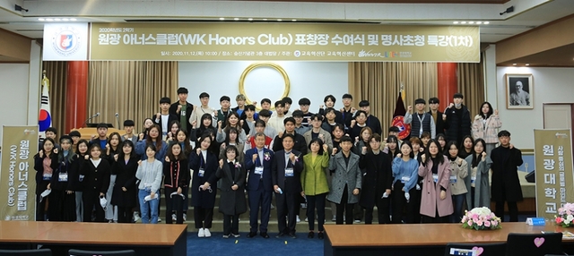 원광대 교육혁신단 교육혁신센터는 지난 12일 교내 숭산기념관에서 2020학년도 2학기 원광 아너스클럽(WK Honors Club) 제1회 명사 특강 및 표창장 수여식을 진행했다.