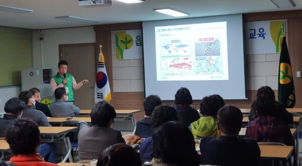 이날 특강에 나선 임장훈(새마을문고 부회장) 현장강사는 기후위기, 생명위기에 대한 인식과 경각심을 갖고 새마을 지도자들이 마을 공동체에서 1건(健) (유기농 태양광발전소와 유기농법), 2식(植) (나무와 양삼(케냐프) 심기), 3감(減) (에너지사용 줄이기, 비닐프라스틱 줄이기 수입육고기 줄이기) 운동으로 대전환운동에 활동가로 나서줄것을 당부했다.