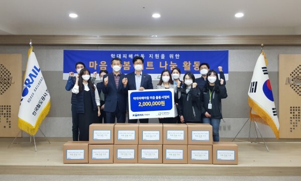 한국철도 전북본부(본부장 김광모)는 17일 굿네이버스 전북서부아동권리센터(센터장 오아름)와 함께 익산역에서 학대피해아동의 정서적 안정에 도움을 줄 ‘마음돌봄키트’ (시가 200만원상당)를 제작해 도내 학대피해아동 20명에게 전달했다.