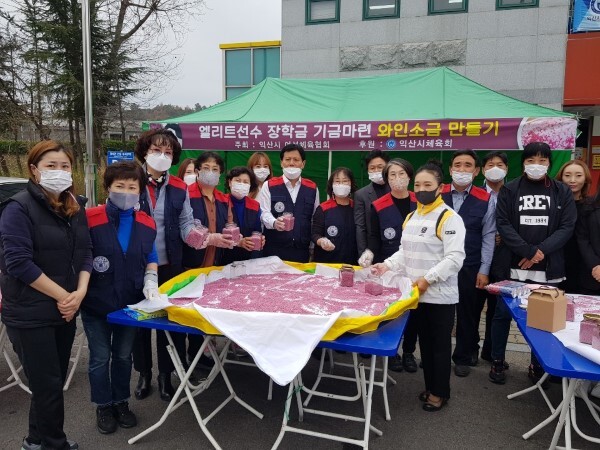 익산시여성체육협회(회장 이해정)가 엘리트 선수 장학기금 마련을 위한 와인소금 만들기 행사를 개최했다.