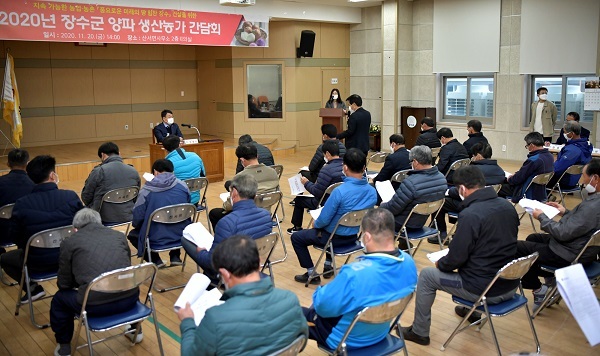 지난 20일 산서면사무소에서 진행된 양파생산농가와의 간담회에는 장영수 군수를 비롯한 김용준 장수농협조합장, 김남기 장수양파연구회 회장, 양파 재배농가 등 40여 명이 함께 머리를 맞댔다.