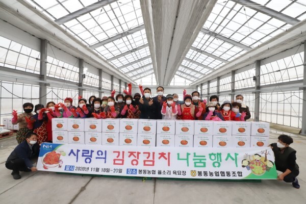 봉동농협(조합장 김운회)은 지난 18일부터 20일까지 3일간 봉동농협 농가주부모임(회장 원복순) 회원 및 농촌사랑봉사단(회장 이영로) 35여명과 함께 김장김치 1500포기를 담아 어려운 이웃들에게 전달하는 ‘사랑의 김장 나눔행사’를 가졌다.