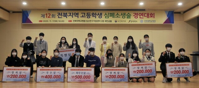 전북대학교병원(병원장 조남천)은 권역응급의료센터 주관으로 ‘2020 전북 고등학생 심폐소생술 경연대회’를 지난 17일 열고 출전한 도내 고등학교 11개 팀 중 우수한 성적을 낸 참가자를 시상했다고 23일 밝혔다.