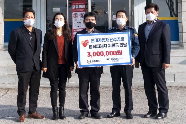 현대자동차 전주공장(공장장 문정훈)은 26일 완주경찰서에 온(溫) 더하기 기금 300만원을 전달했다.
